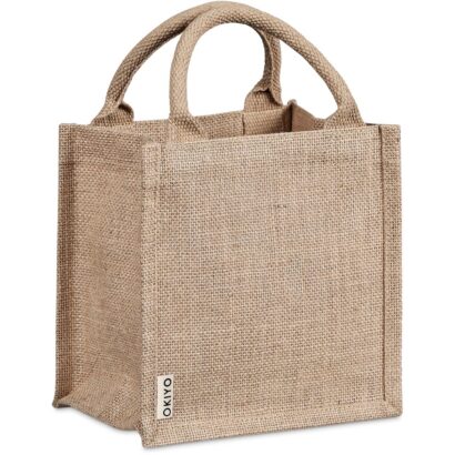 A reusable alternative to disposable gift bags, made from natural and sustainable jute material, with cotton rope handles.